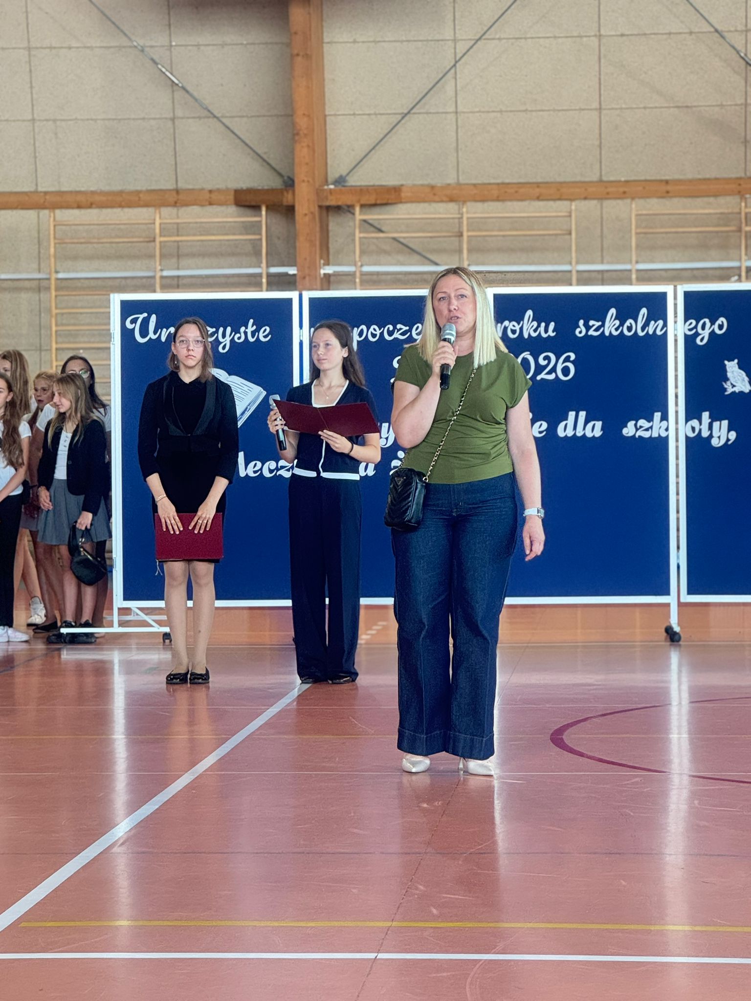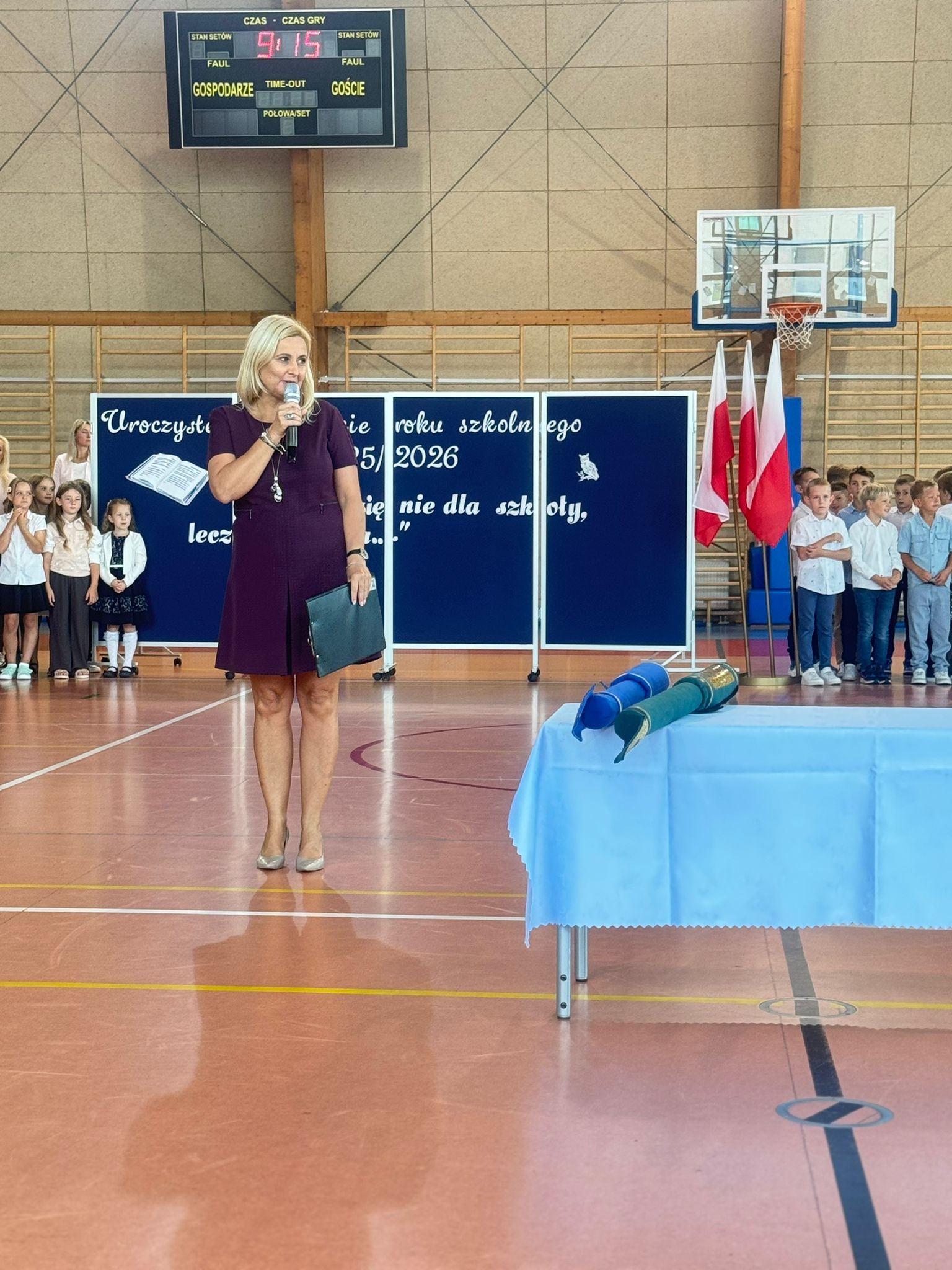 Na zakończenie Przewodnicząca Rady Rodziców Pani Magdalena Tatrocka skierowała kilka ciepłych słów na temat nowego roku szkolnego do uczniów.
