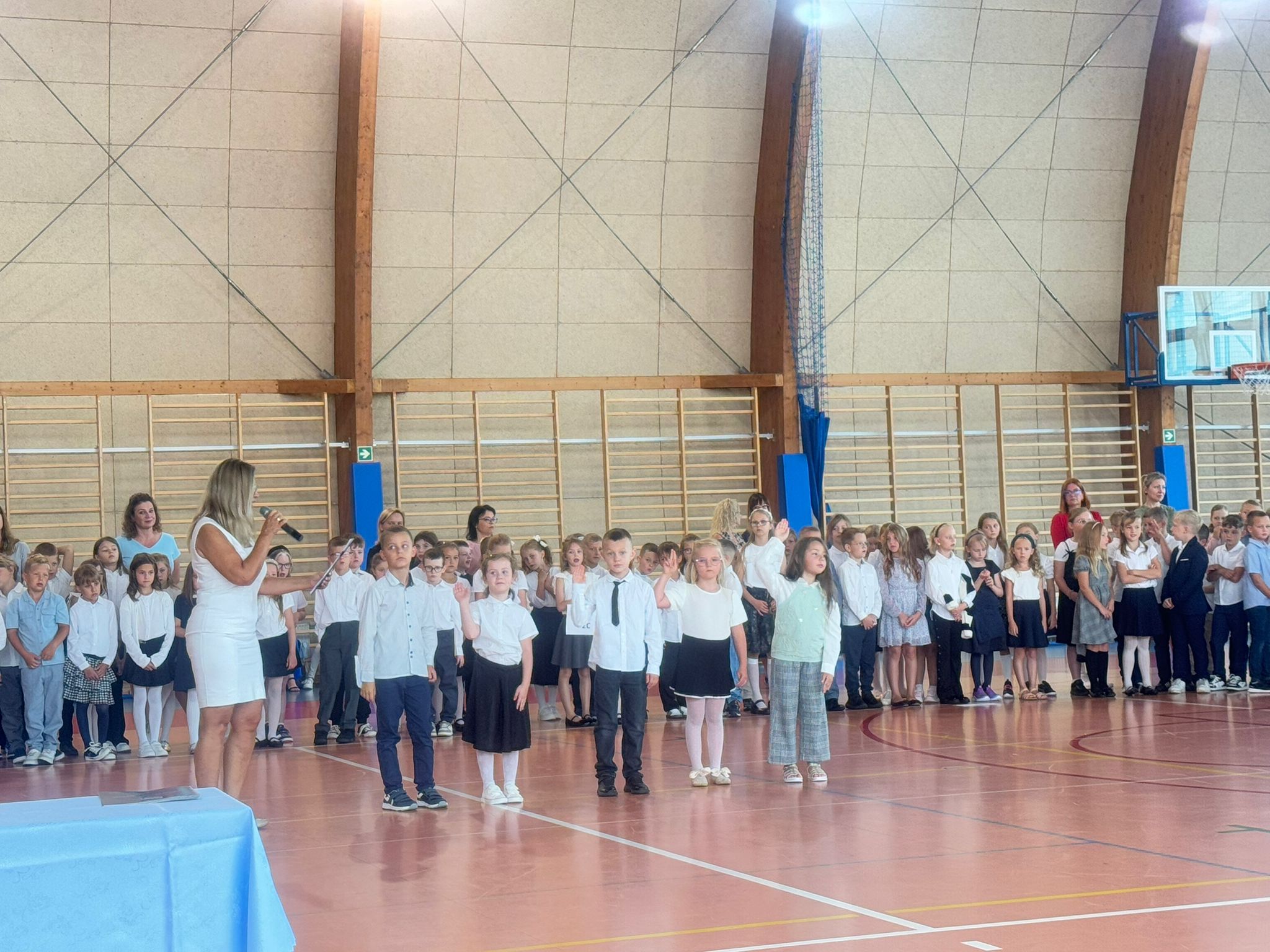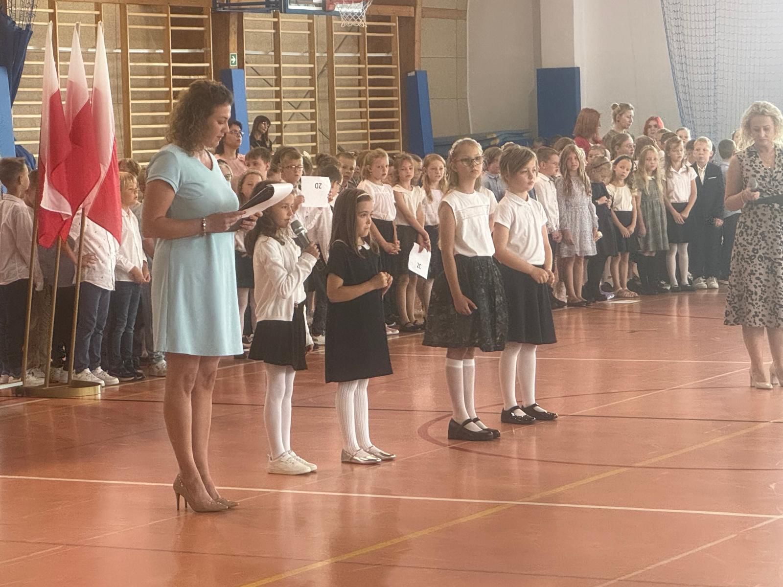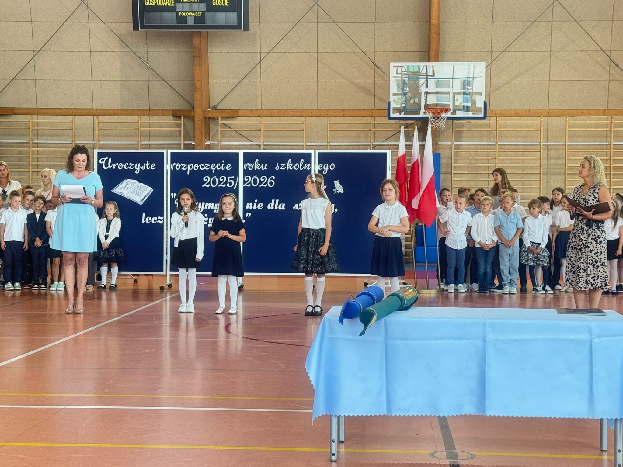 1 września w naszej szkole odbyła się inauguracja roku szkolnego 2025/2026 połączona z uroczystym pasowaniem pierwszoklasistów na uczniów. Swoją obecnością zaszczyciła nas Pełnomocnik ds. Oświaty oraz Sekretarz Gminy Kosakowo Pani Agnieszka Kamińska-Klimczyk, która w imieniu Pani Wójt przekazała upominki dla uczniów klas pierwszych. Pani Dyrektor życzyła uczniom, aby każdy dzień w szkole był dla nich interesujący, pełen radości i prosiła, aby pamiętali, że: „Uczą się nie dla szkoły, lecz dla życia”.