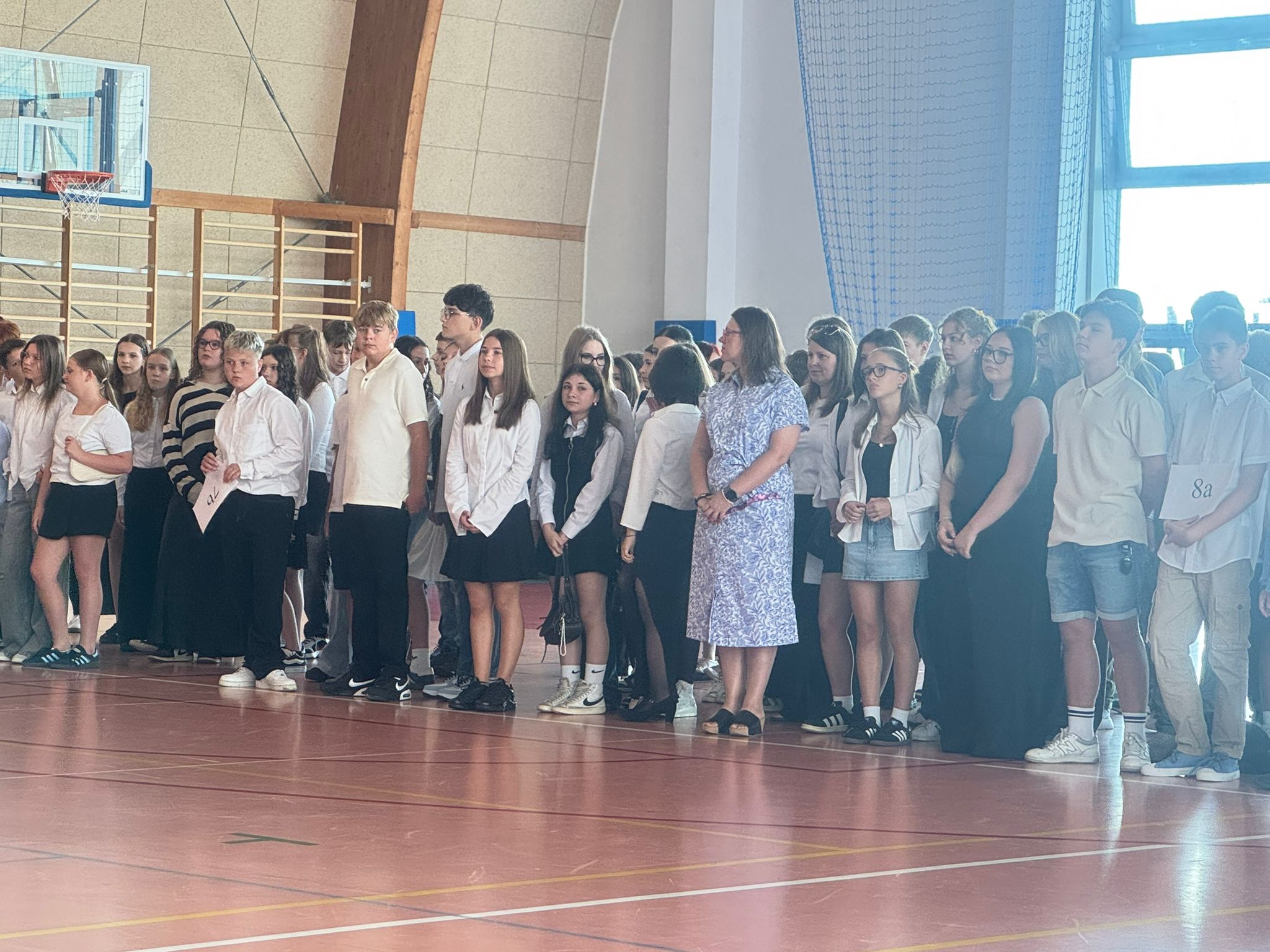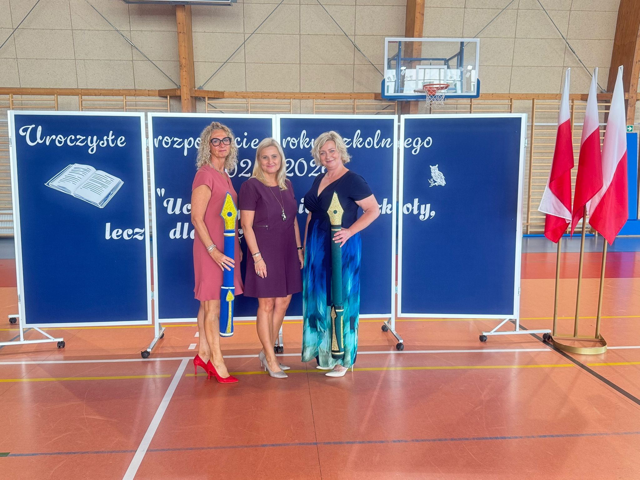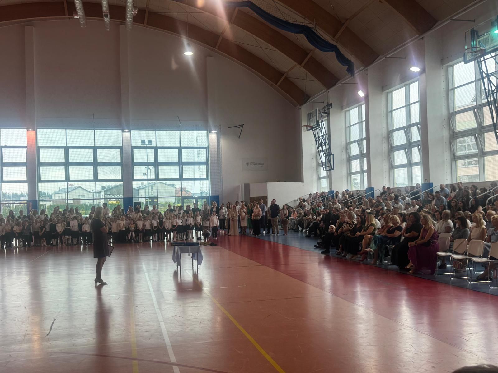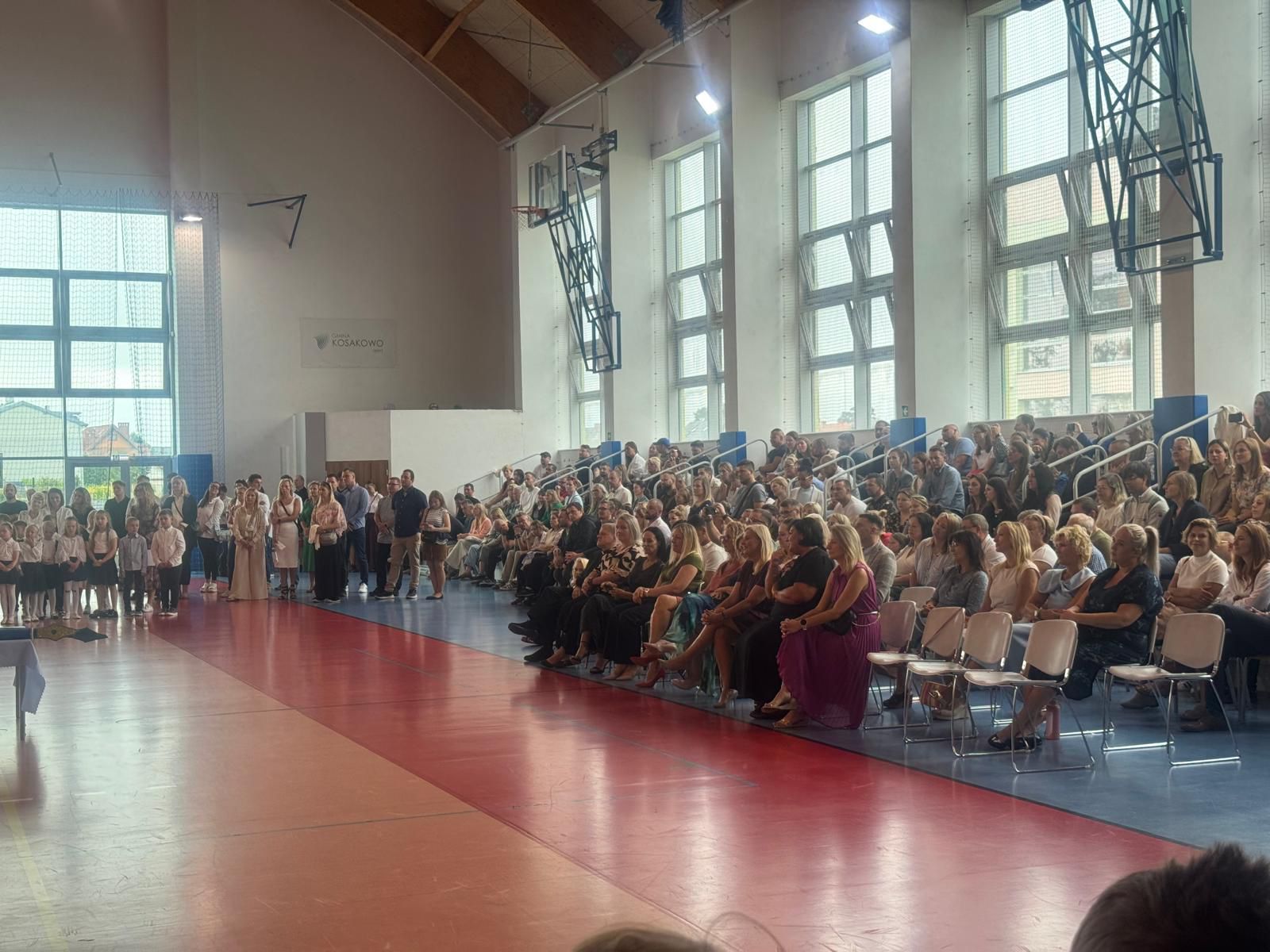1 września w naszej szkole odbyła się inauguracja roku szkolnego 2025/2026 połączona z uroczystym pasowaniem pierwszoklasistów na uczniów. Swoją obecnością zaszczyciła nas Pełnomocnik ds. Oświaty oraz Sekretarz Gminy Kosakowo Pani Agnieszka Kamińska-Klimczyk, która w imieniu Pani Wójt przekazała upominki dla uczniów klas pierwszych. Pani Dyrektor życzyła uczniom, aby każdy dzień w szkole był dla nich interesujący, pełen radości i prosiła, aby pamiętali, że: „Uczą się nie dla szkoły, lecz dla życia”.