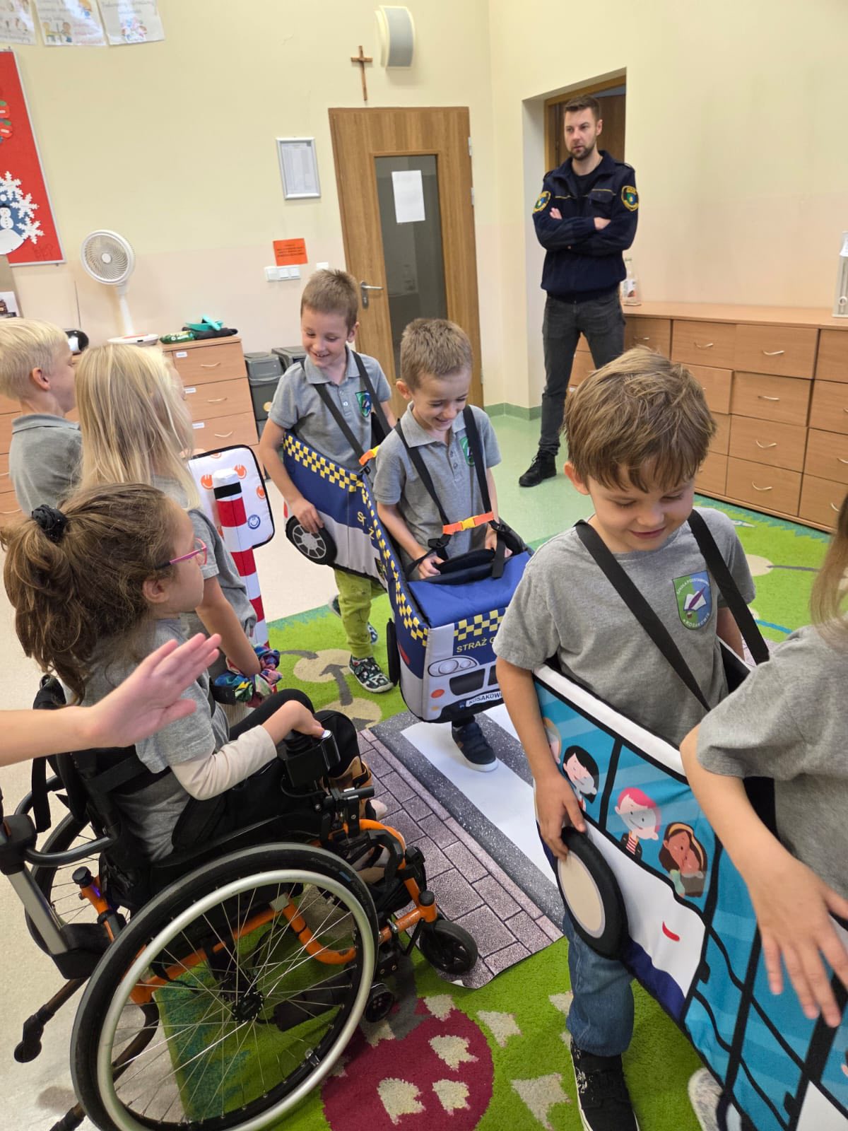Za nami warsztaty w najmłodszej grupie uczniów i przedszkolaków z zakresu bezpieczeństwa na drodze. Wszystkim uczniom klas pierwszych i grupie przedszkolnej zostały przedstawione zasady bezpiecznego poruszania się po drodze. Warsztaty przeprowadzone zostały przez pracowników Straży Gminnej w Kosakowie za co bardzo dziękujemy. Dzieci zostały wyposażone w odblaski dzięki, którym będą widoczne na drogach.